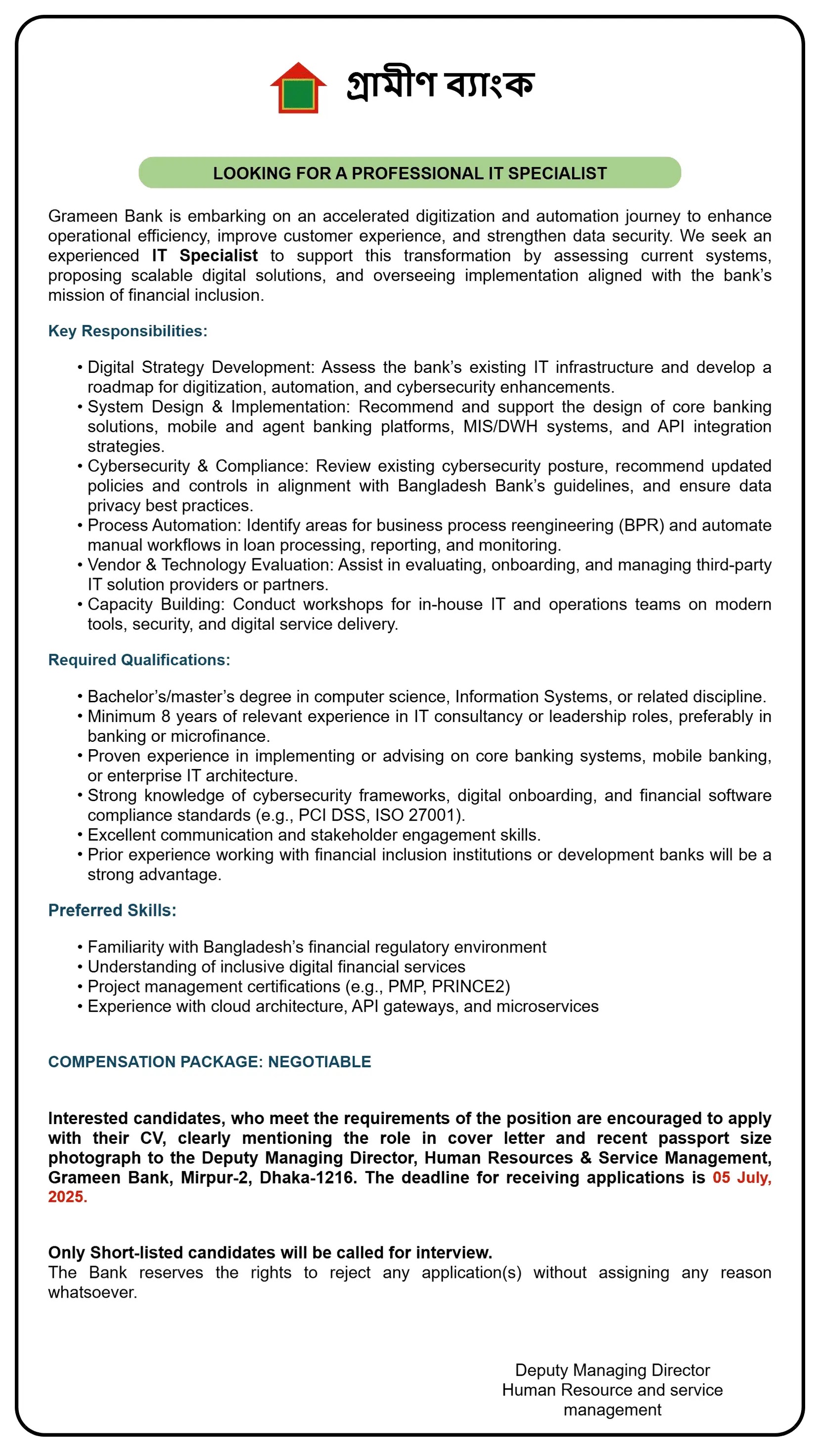 • আবেদন লিংক: https://grameenbank.org.bd/about/career