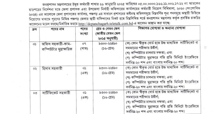 সকল জেলা প্রশাসকের কার্যালয়ে নিয়োগ বিজ্ঞপ্তি ২০২৫