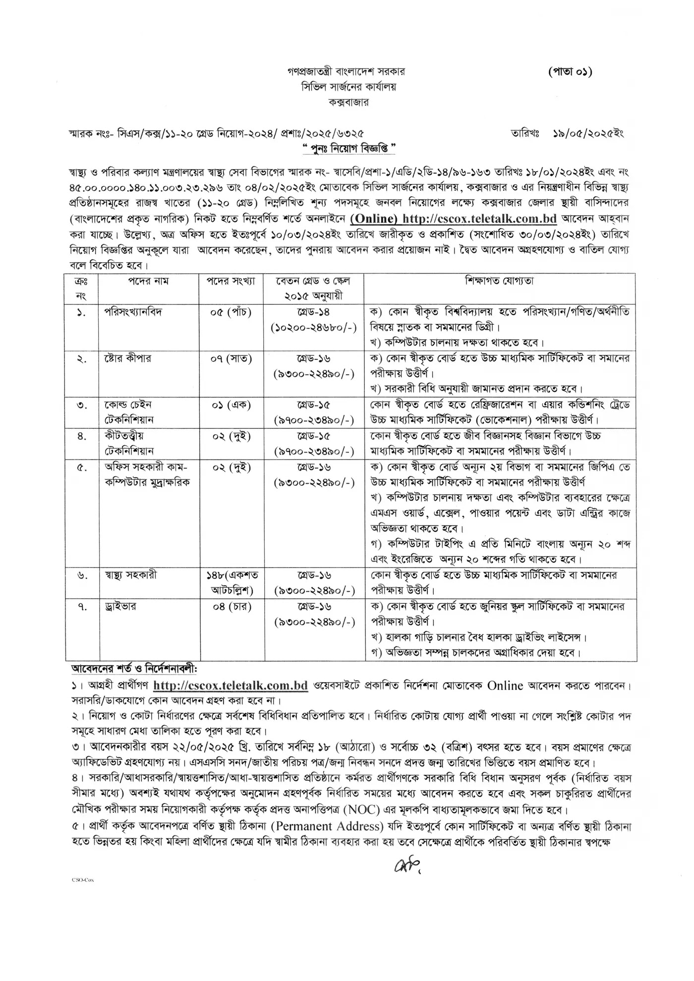 Upazila Health Complex Job Circular 2025 ;Has been published on the official Civil Surgeon Office Jobs websites https://dghs.gov.bd/ Online applications are being invited from Bangladeshi citizens subject to the educational qualification and other conditions mentioned next to the name for appointment to the following posts Health Assistant Recruitment 2025 is a Ministry of Bangladesh which is always working to ensure public health and family welfare of the country. Ministry of Health and Family Welfare Circular 2024 The Ministry of Health and Family Welfare was established in the year 1971 which is still running in good standing. The headquarters of the Ministry of Family Welfare is currently located in Dhaka. Civil Surgeon’s Office, has released a recruitment notification for the vacant posts. At Civil Surgeon’s office Interested candidates can apply online.